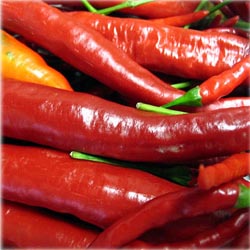 Chilli peppers are red, hot peppers used to flavor dishes.