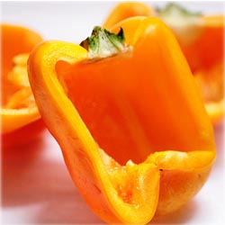 In the U.S. the term sweet pepper covers a wide variety of mild peppers that, like the chile, belong to the capsicum family. The best known sweet peppers are bell peppers, named for their bell-like shape. Yellow bell peppers are popular for their bright, cheery color. They fall into a mid-range of sweetness: greater than the unripe green and a little less than the fully ripened red peppers.